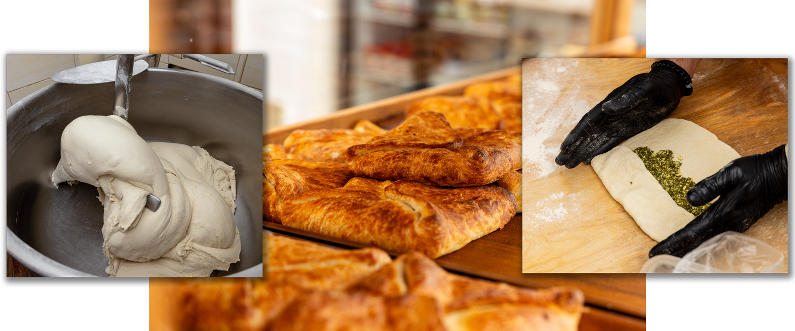 Podstawą naszego chaczapuri jest puszyste, drożdżowe ciasto, które jest starannie wyrabiane, a następnie wypiekane do perfekcji w wysokiej temperaturze. To właśnie odpowiednie ciasto nadaje mu niepowtarzalną teksturę – chrupiącą na zewnątrz, a jednocześnie cudownie miękką i delikatną w środku.